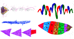 Vraag de leerlingen om de geluiden te tekenen. Het is belangrijk dat ze niet de bron van het geluid proberen te tekenen, maar het geluid zelf: