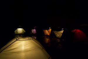 "Regen, vuurwerk, kerkklokken en kinderstemmen sijpelen je oren binnen maar ook kleuren, beelden en geuren. De tentzeilen hebben iets van een tweede huid waardoor de trillingen nabij aanvoelen in de duisternis. (...) Fondouk: anders luisteren leidt tot anders kijken." (De Standaard, 18/02/2015)